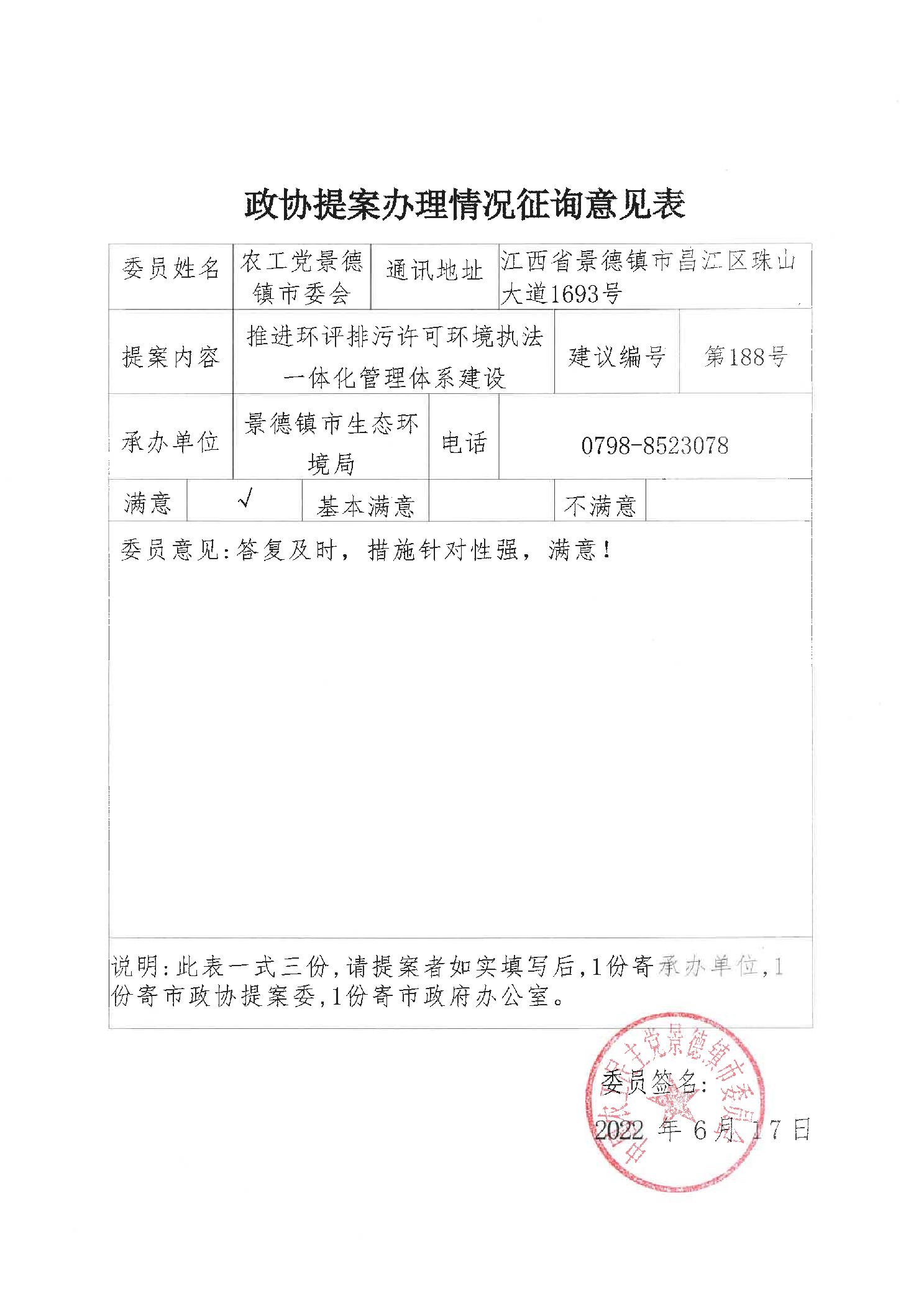会议第188号提案的委员答复