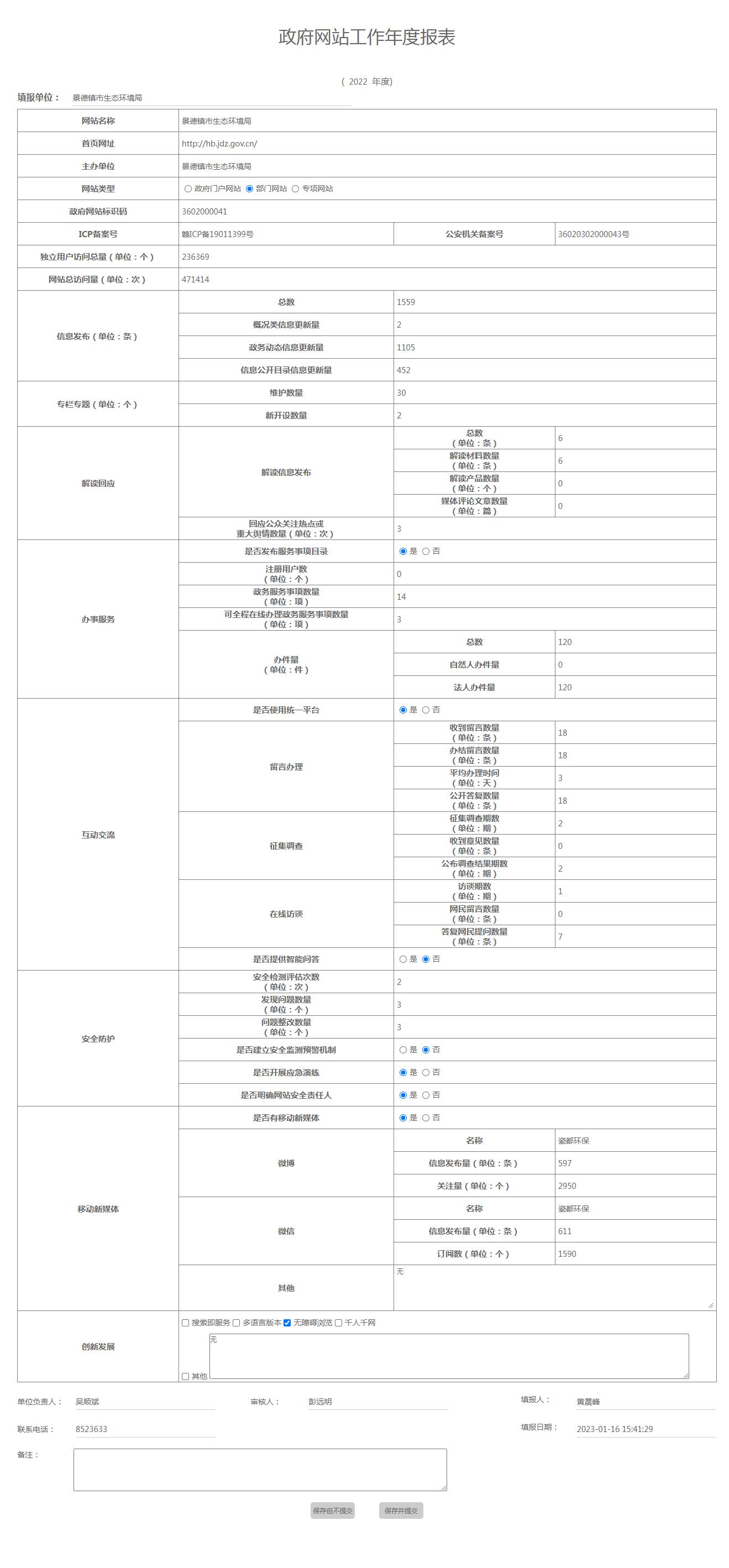 景德镇市生态环境局政府网站工作年度报表