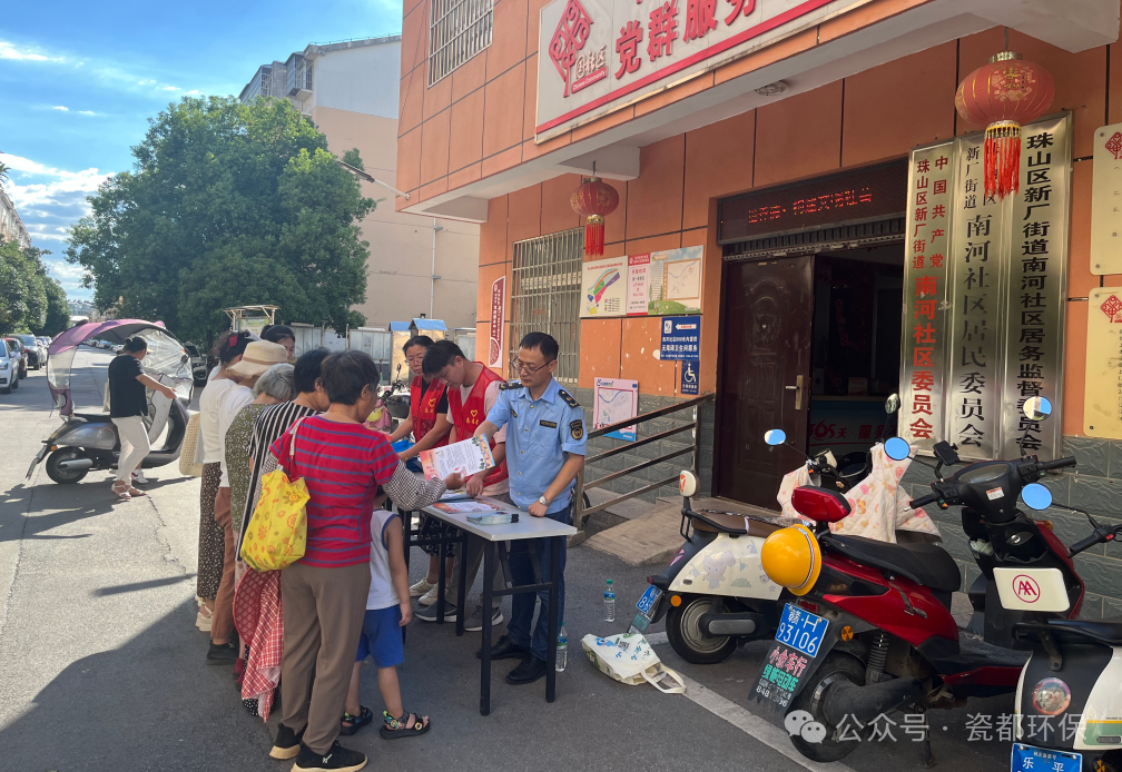 在社区,宣传人员通过向辖区居民讲解保护环境的重要性、绿色出行理念及日常生活中的环境保护常识等内容,倡导绿色生活方式,宣传生态环境保护的重要意义,并把环保宣传教育资料发放到居民手中。普及了绿色消费、节能减排、垃圾分类等知识,讲解了环境污染的危害,介绍节约用水、电、纸等资源的方法。