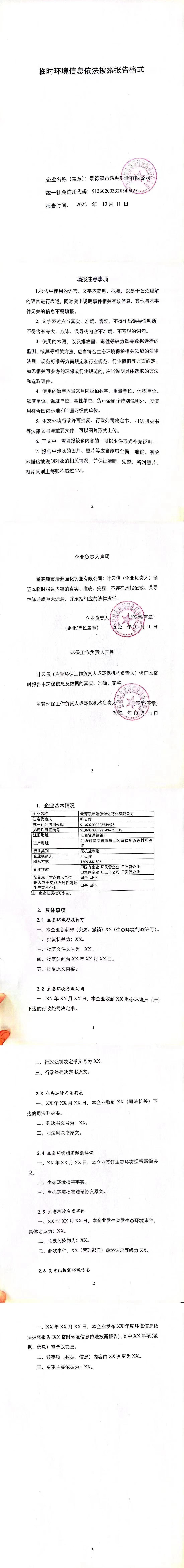 景德镇市浩源钙业有限责任公司临时环境信息依法披露报告