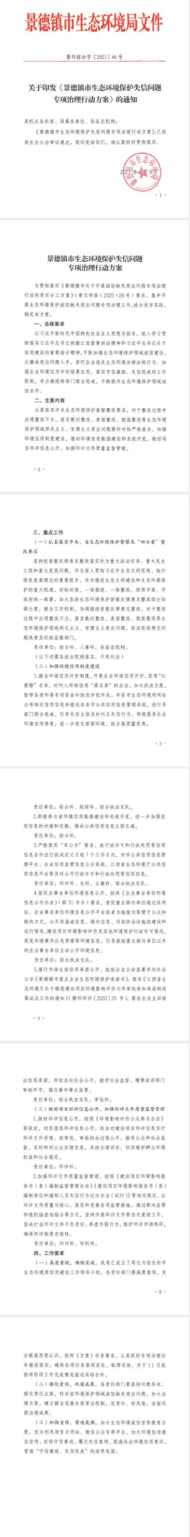 关于印发《景德镇市生态环境保护失信问题专项治理行动方案》的通知